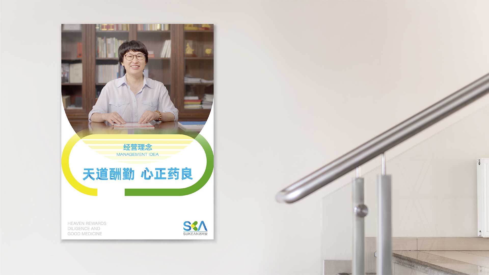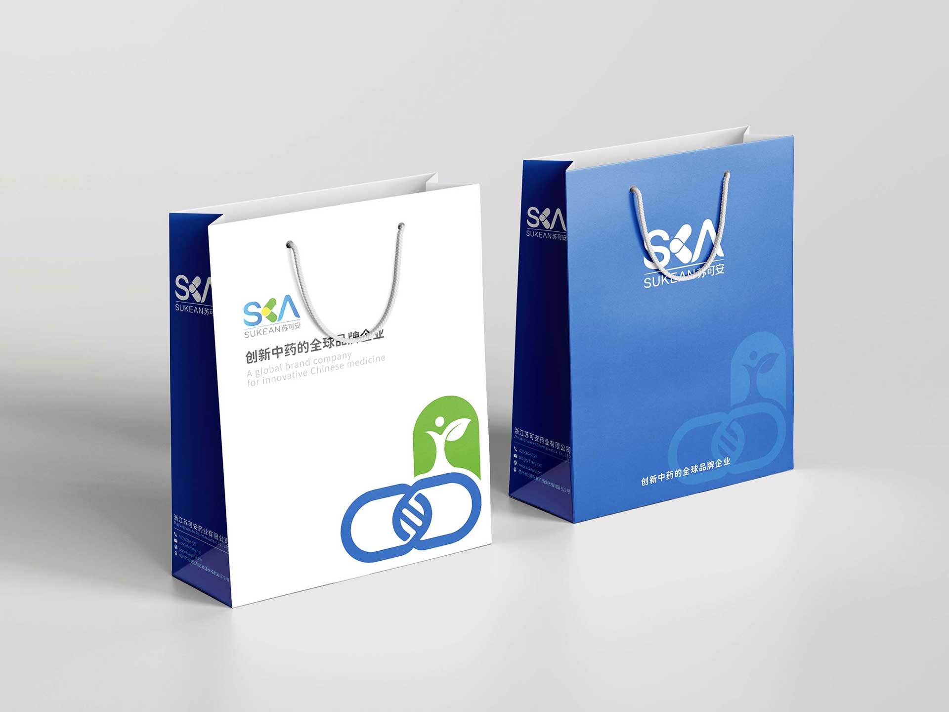 LOGO的中部采用膠囊的組合型來表現K的右半側。上半部分采用顏色變化來區分膠囊兩個部分不同的顏色,根據公司中成藥成分比例進行圖形的融合,下半部分進行斷截處理融入氣霧劑的主體形狀,末端利用漸變處理將氣霧劑的工作狀態進行融入。上下部分組合成一個“心”形,寓意著蘇可安秉持著公益之心,踐行社會責任,做良心之藥。同時代表著公司今后的發展方向和打造心血管領域標桿產品的決心。在表現企業性質的同時,增加了企業的文化感。