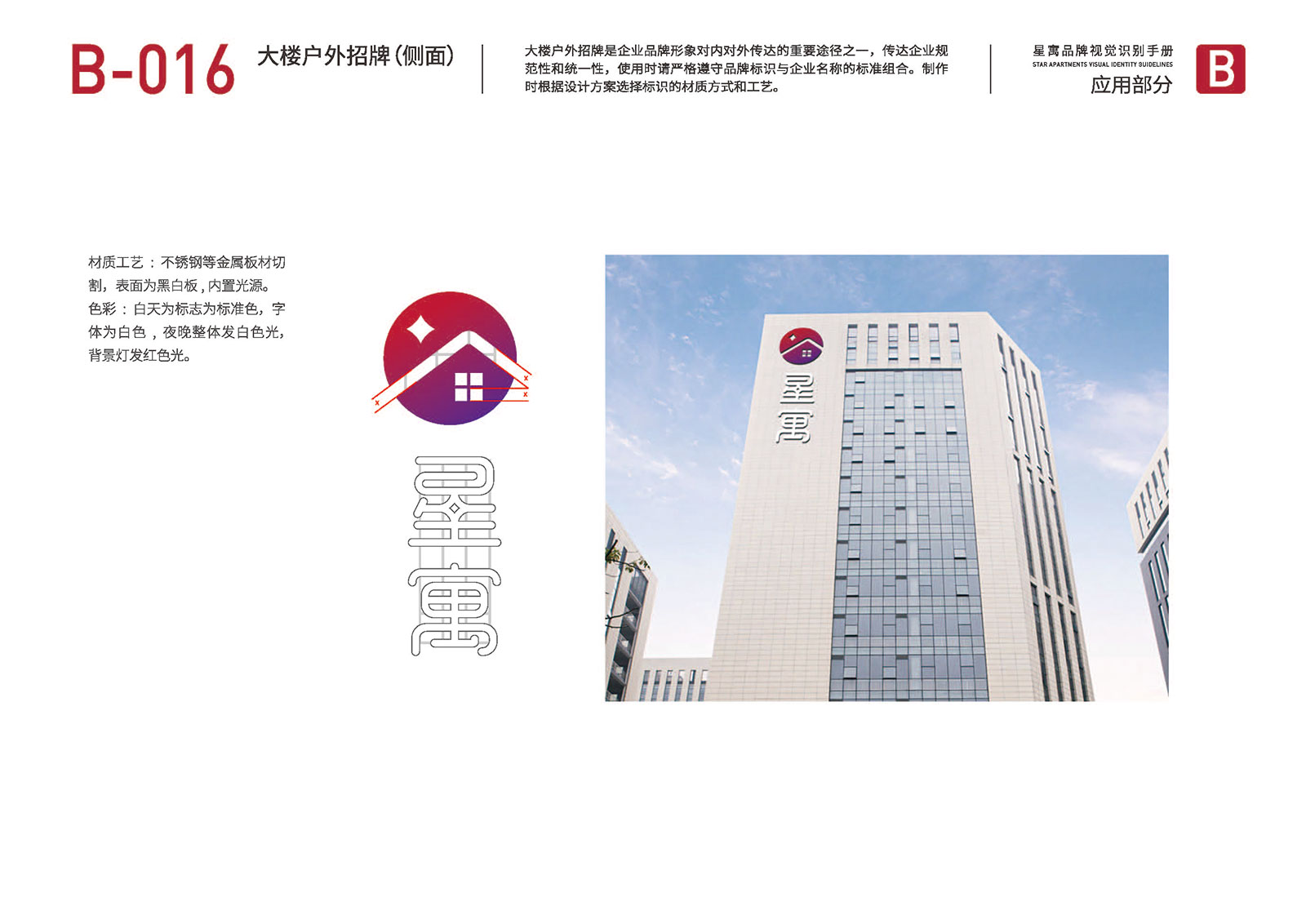 LOGO是認識一個品牌的開端,為使設(shè)計的logo更具可讀性,我們從字面釋義出發(fā),通過發(fā)散思維,聯(lián)想到“房子”、“窗戶”、“啟明星”這些元素,先以極簡的線條勾勒出房子外形,以“啟明星”作為窗戶嵌居于內(nèi),“星星”象征光明、希望,易使人產(chǎn)生美好聯(lián)想。LOGO整體簡約時尚、個性鮮明,記憶點明顯,具有很高的識別度。