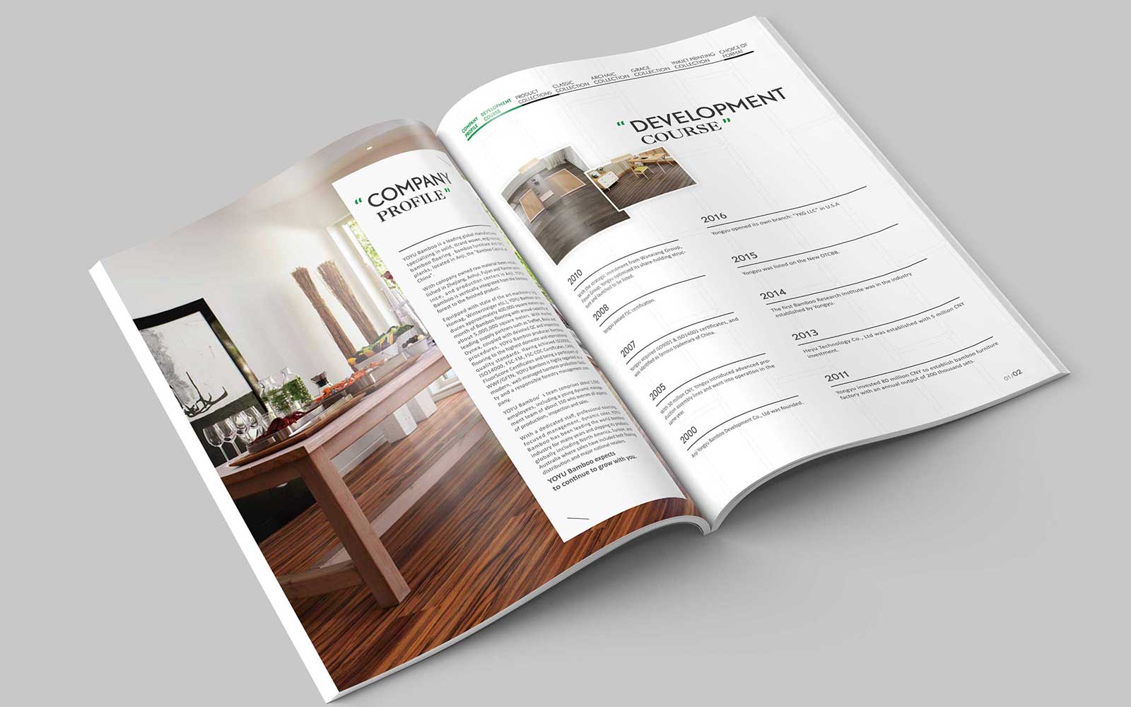 高端的竹制品家具彰顯尊貴,永裕家具畫冊設計別具一格,。作為浙江省林業重點龍頭企業和浙江省農業骨干重點龍頭企業,永裕始終遵循"誠信務實、精益求精"的經營理念,不斷規范企業管理,注重品牌推廣,并致力于推動生態環境保護與森林資源的可持續利用,全力打造"健康、環保"的企業形象。永裕公司先后通過了ISO9001-2000國際質量體系認證、ISO14000環境體系認證以及國際森林管理組織FSC認證,"永裕"品牌也被認定為"中國馳名商標"。