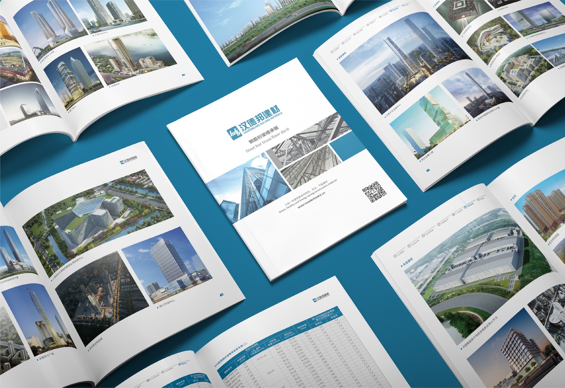 二、色彩搭配:宣傳冊整體采用沉穩的藍灰色調,象征鋼筋桁架樓承板的堅固與穩定。同時,搭配明亮的金色或銀色,用于突出關鍵信息和產品特點,提升視覺沖擊力。
