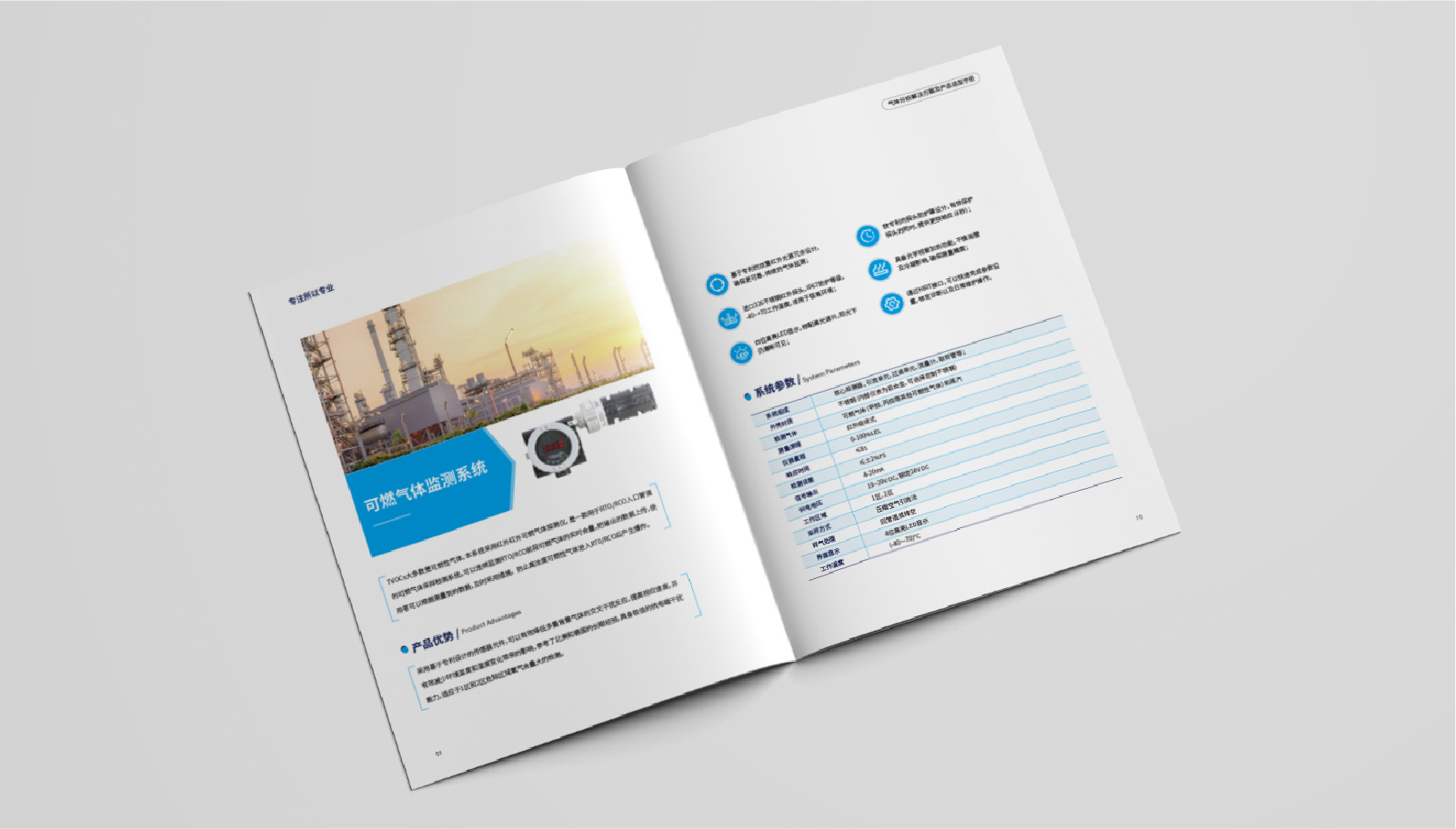 3、內頁將產品詳細展示,并針對每個產品進行細致介紹。同時,在每個產品介紹中加入工作原理、技術參數、產品特點等信息,讓客戶更全面地了解泰仲科技所提供的氣體分析解決方案及產品。