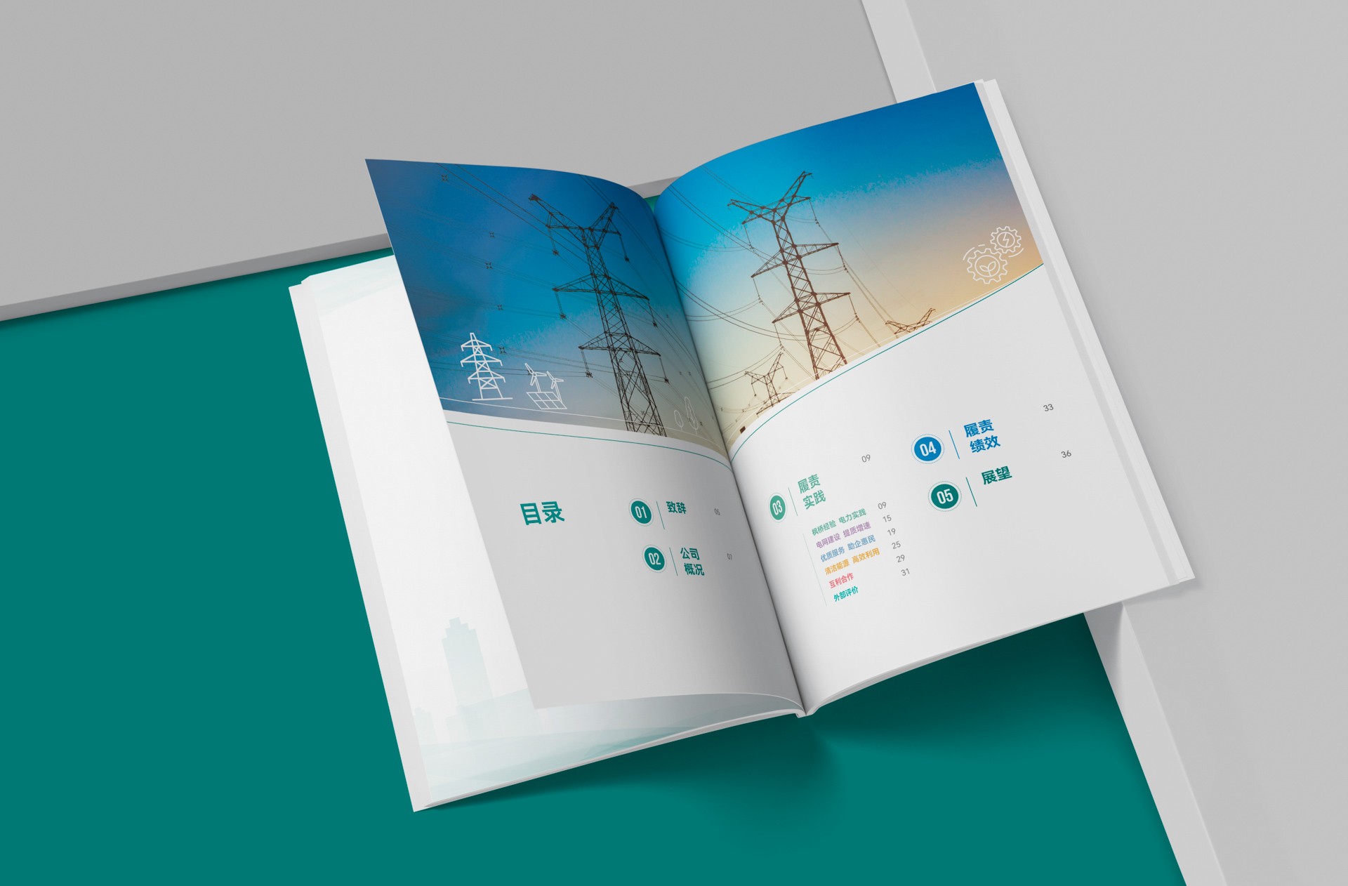 項目團隊立足"電助共富"核心主題,通過模塊化版式設計、數據可視化呈現及場景化案例解析,將專業電力服務轉化為通俗易懂的視覺語言。封面采用水墨山巒與電路脈絡融合設計,象征傳統與現代的共生發展,內頁以藍綠色系為主調傳遞清潔能源理念,展現電力服務與生態文明的深度協同。