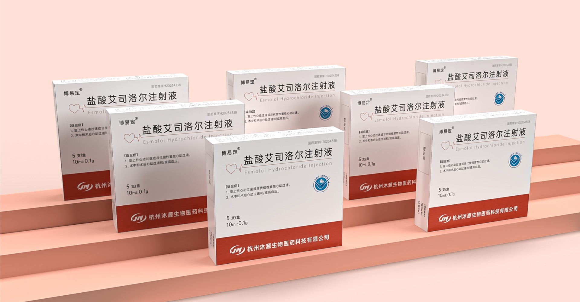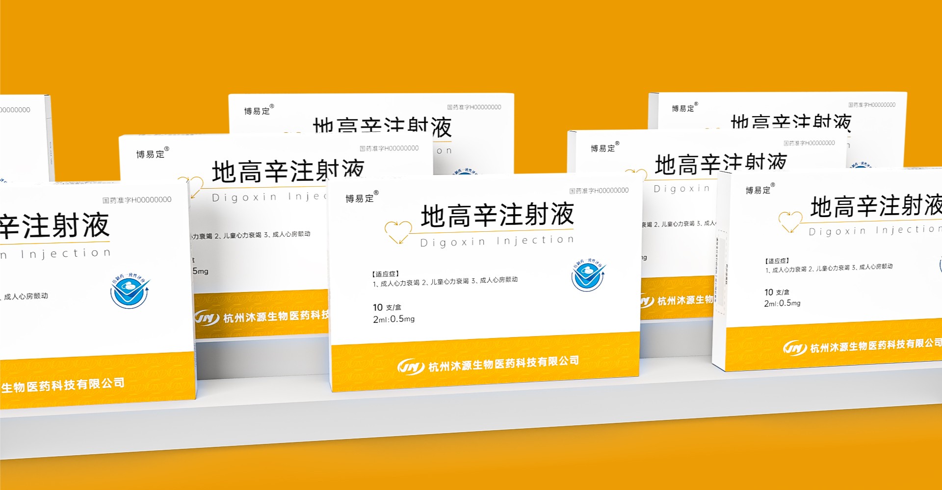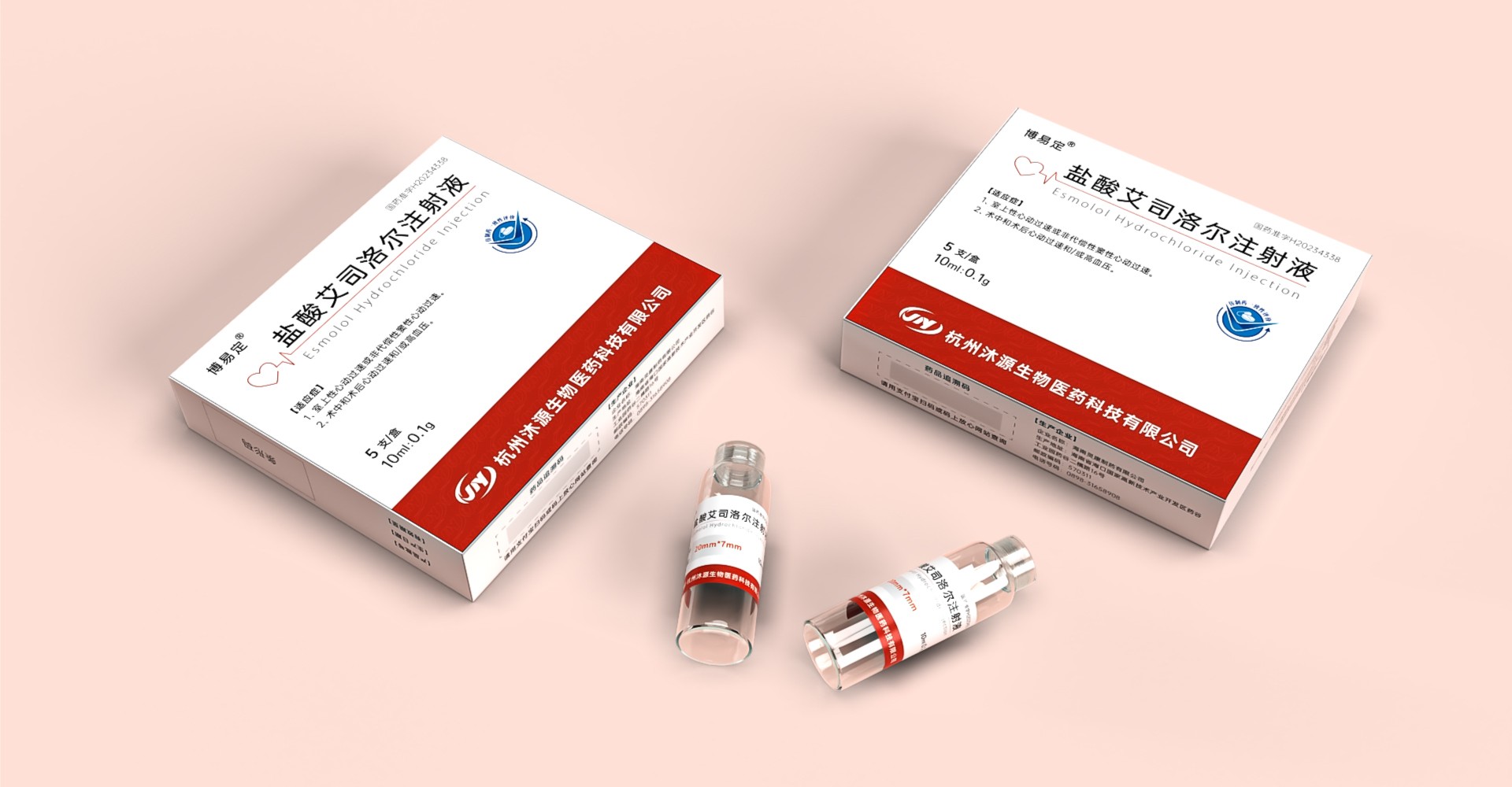 為該公司進行了注射液系列多款產品策劃設計,包裝呈愛心形狀的圖標明確展示了產品使用對應的部位,曲折的線條如心電圖, 象征著生命的律動與健康的心臟功能,與產品的主要用途緊密相連;紅色則代表企業心血管管線的色彩,充滿活力與熱情,整體設計風格將兼具現代感與醫學的專業性。鹽酸艾司洛爾注射液,地高幸注射液等系列產品包裝設計。