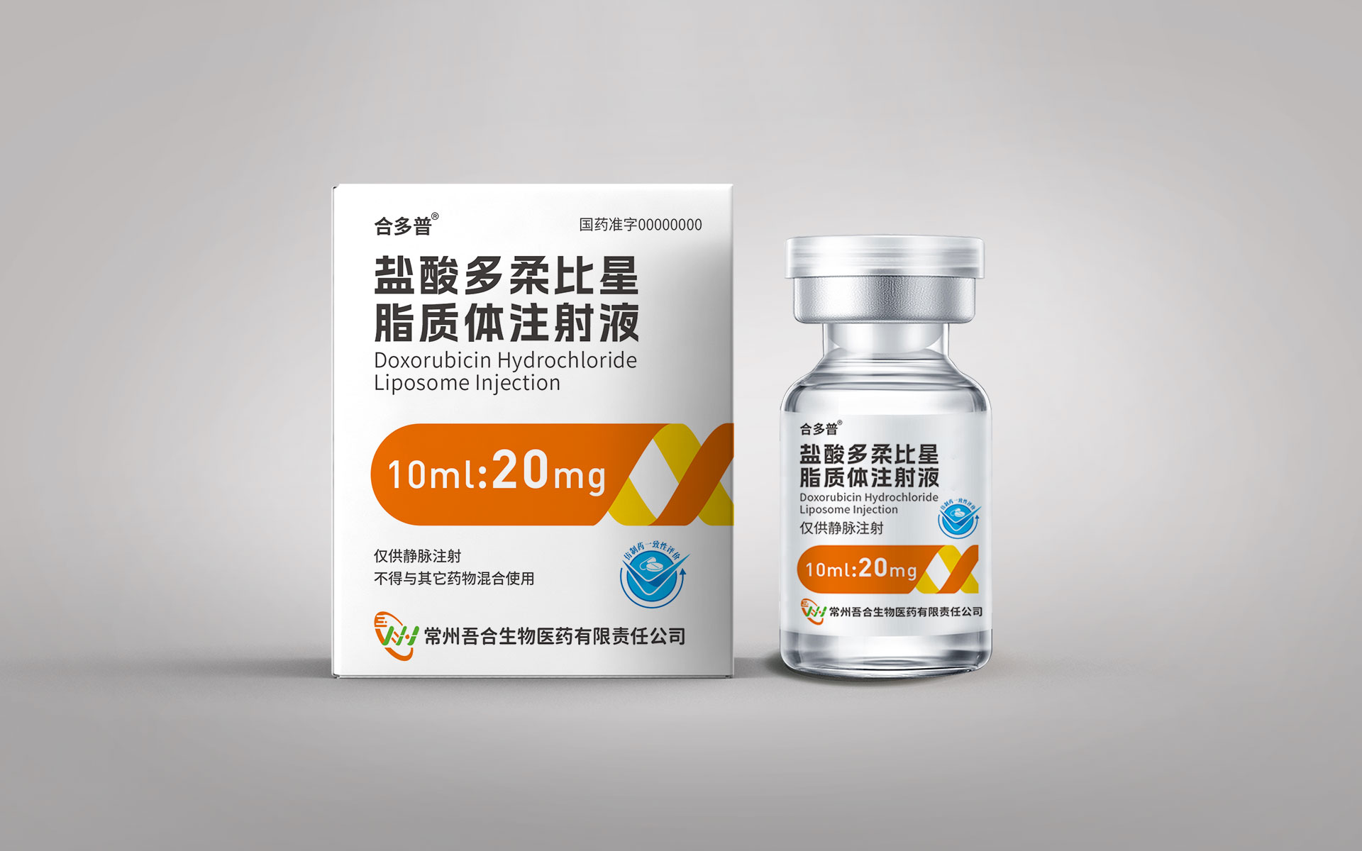 2.“鹽酸多柔比星脂質體注射液”產品包裝設計:10ml和25ml兩個規格產品各1套, 內容包含:說明書,瓶貼標簽,小盒,中盒,大盒。
