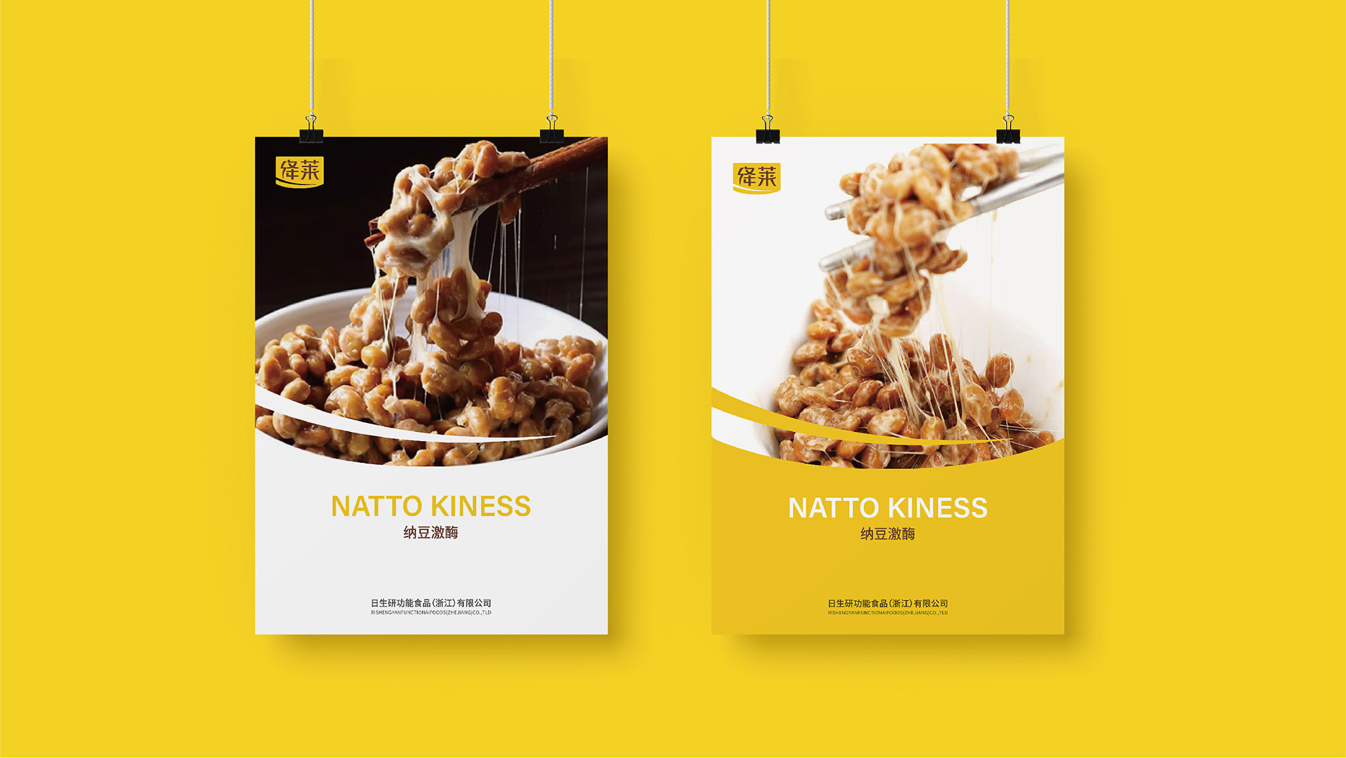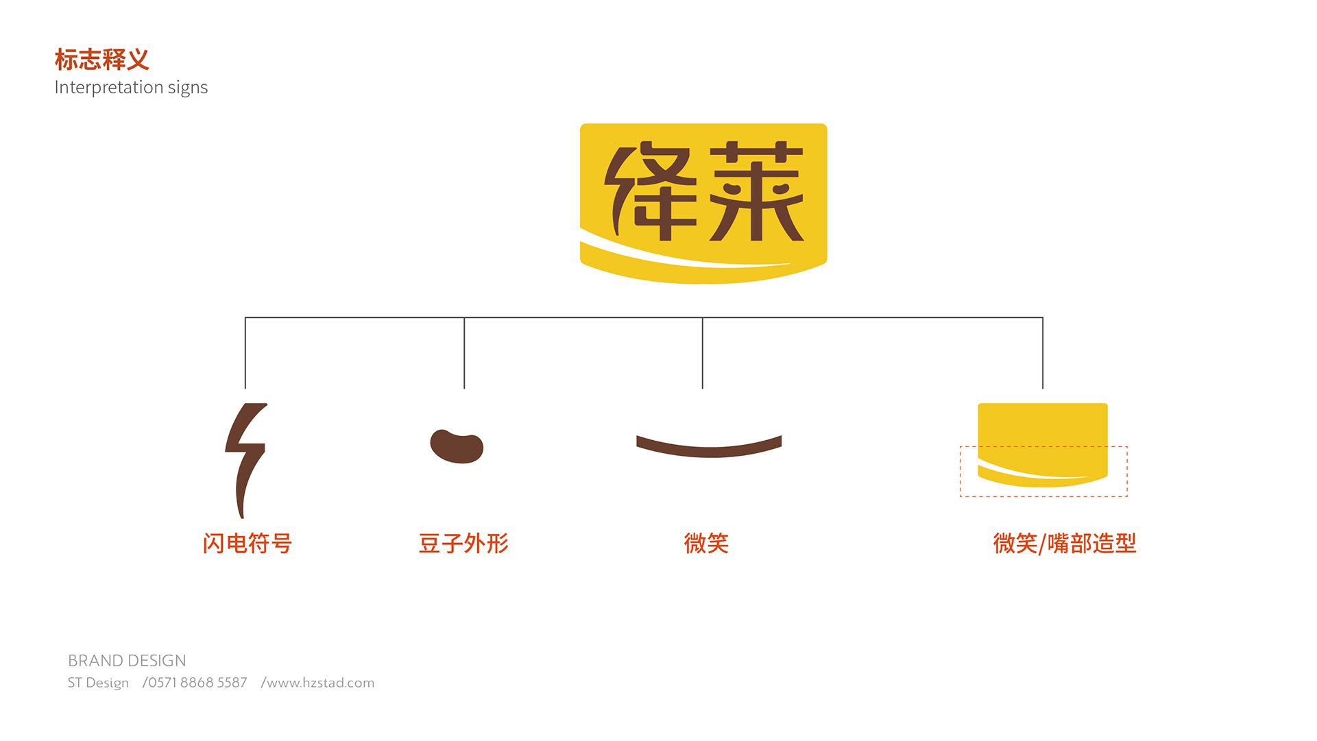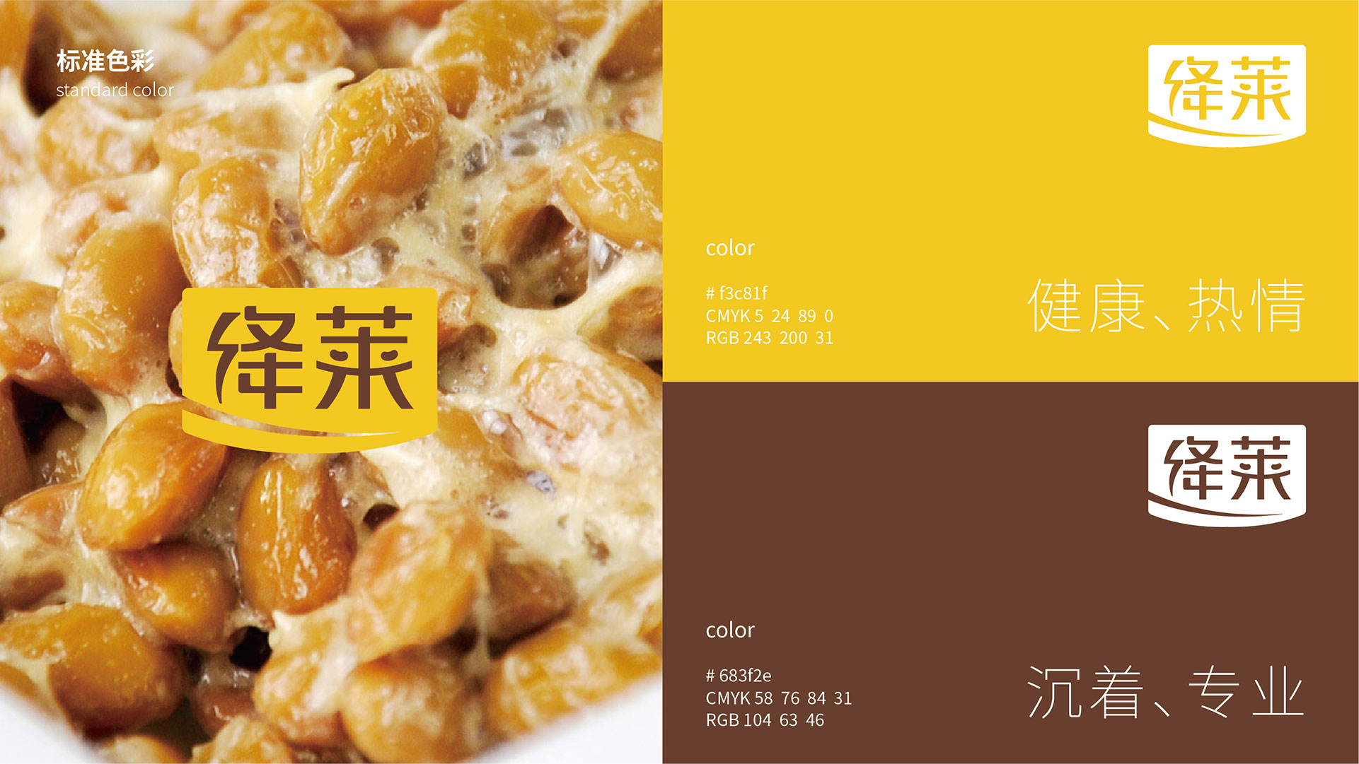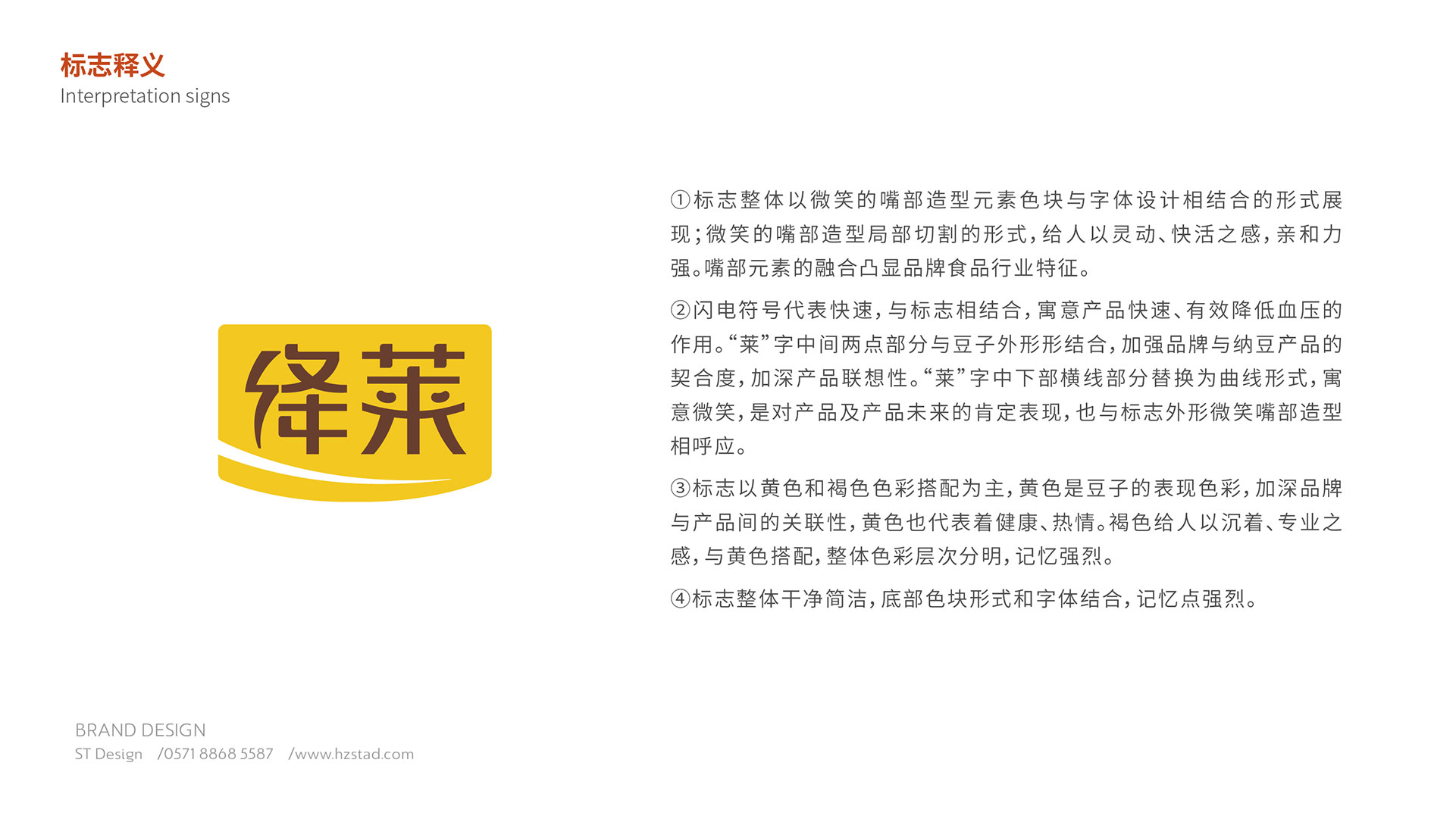 標(biāo)志整體以微笑的嘴部造型元素色塊與字體設(shè)計相結(jié)合的形式展現(xiàn);微笑的嘴部造型局部切割的形式,給人以靈動,快活之感,親和力強(qiáng)。閃電符號代表快速,與標(biāo)志相結(jié)合,寓意產(chǎn)品快速,有效降低血壓的作用。“萊”字中間兩點部分與豆子外形相結(jié)合,加強(qiáng)品牌與納豆產(chǎn)品的契合度,加深產(chǎn)品的聯(lián)想性。