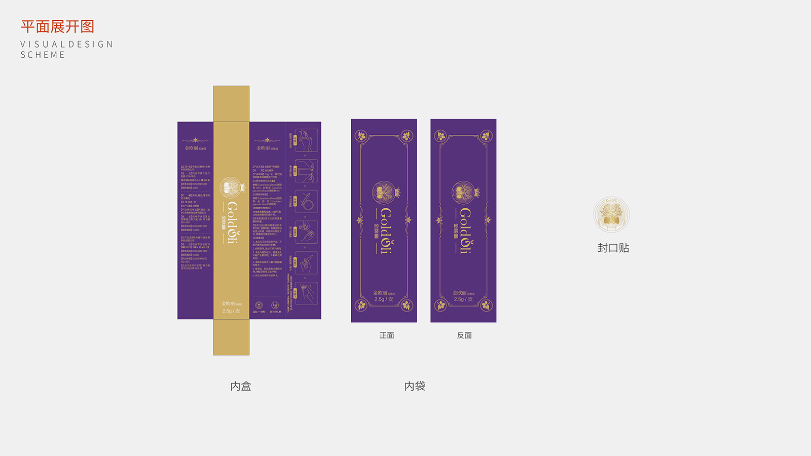 石特在創意思考之前,針對品牌進行全維調研與洞察,對現有包裝進行全面診斷分析,提煉出產品核心主張——每個女人都是自己的公主,并以此為發散點,以公主的IP人物形象進行畫面創作,同時包裝畫面突出風格鮮明的西班牙王室元素,加強產源地背書及產品核心賣點凝練。包裝運用女性紫與尊貴金的色彩進行渲染,時尚醒目,記憶點十足。細細品味,包裝處處體現尊貴與呵護,整體來看,包裝解決了金歐麗品牌與受眾利益訴求之間的溝通不順的問題,以市場化、差異化的表現手法將品牌展現的淋漓盡致,獲得客戶一致好評!