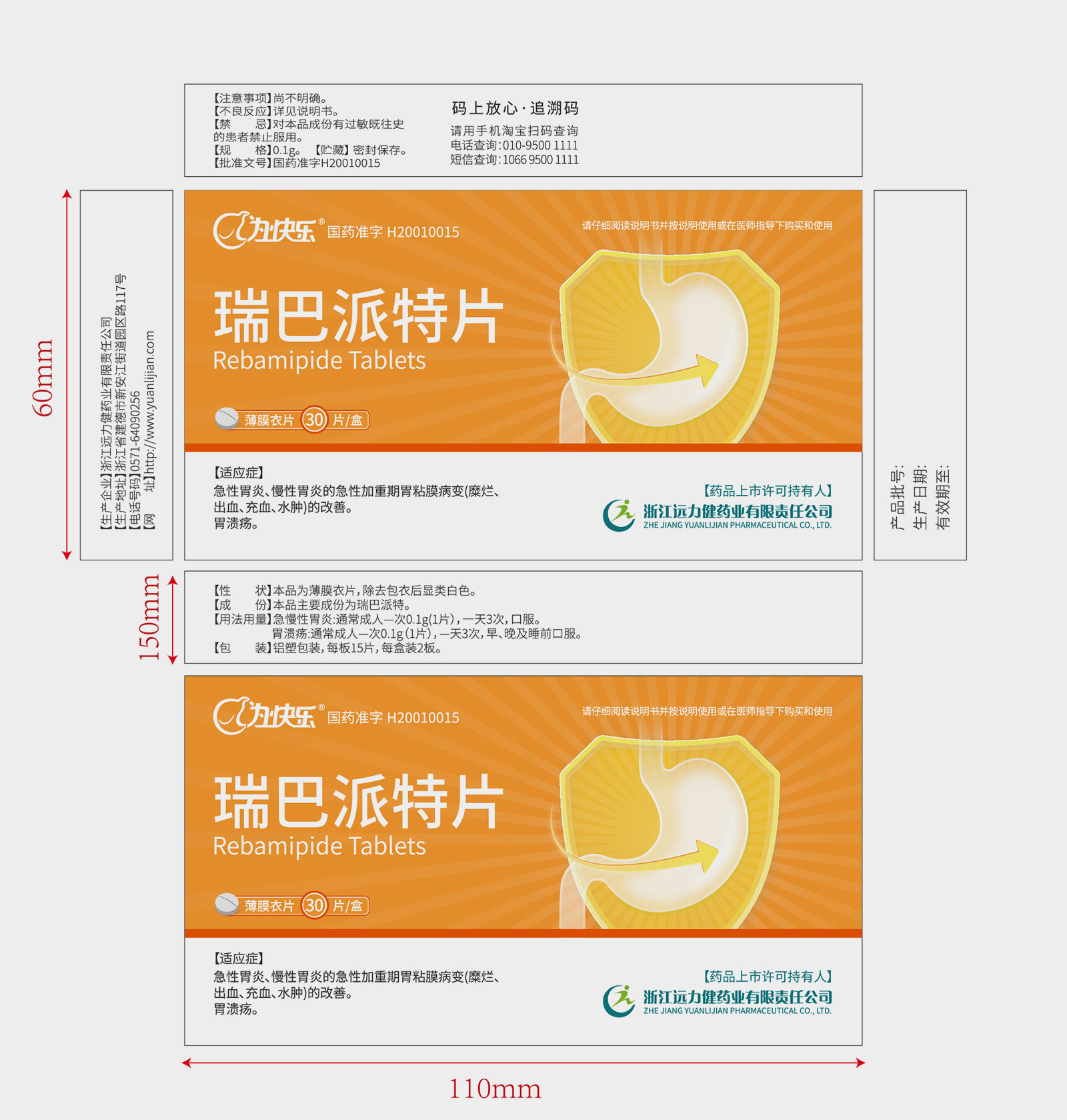 遠(yuǎn)力健藥業(yè)瑞巴派特片藥品包裝設(shè)計