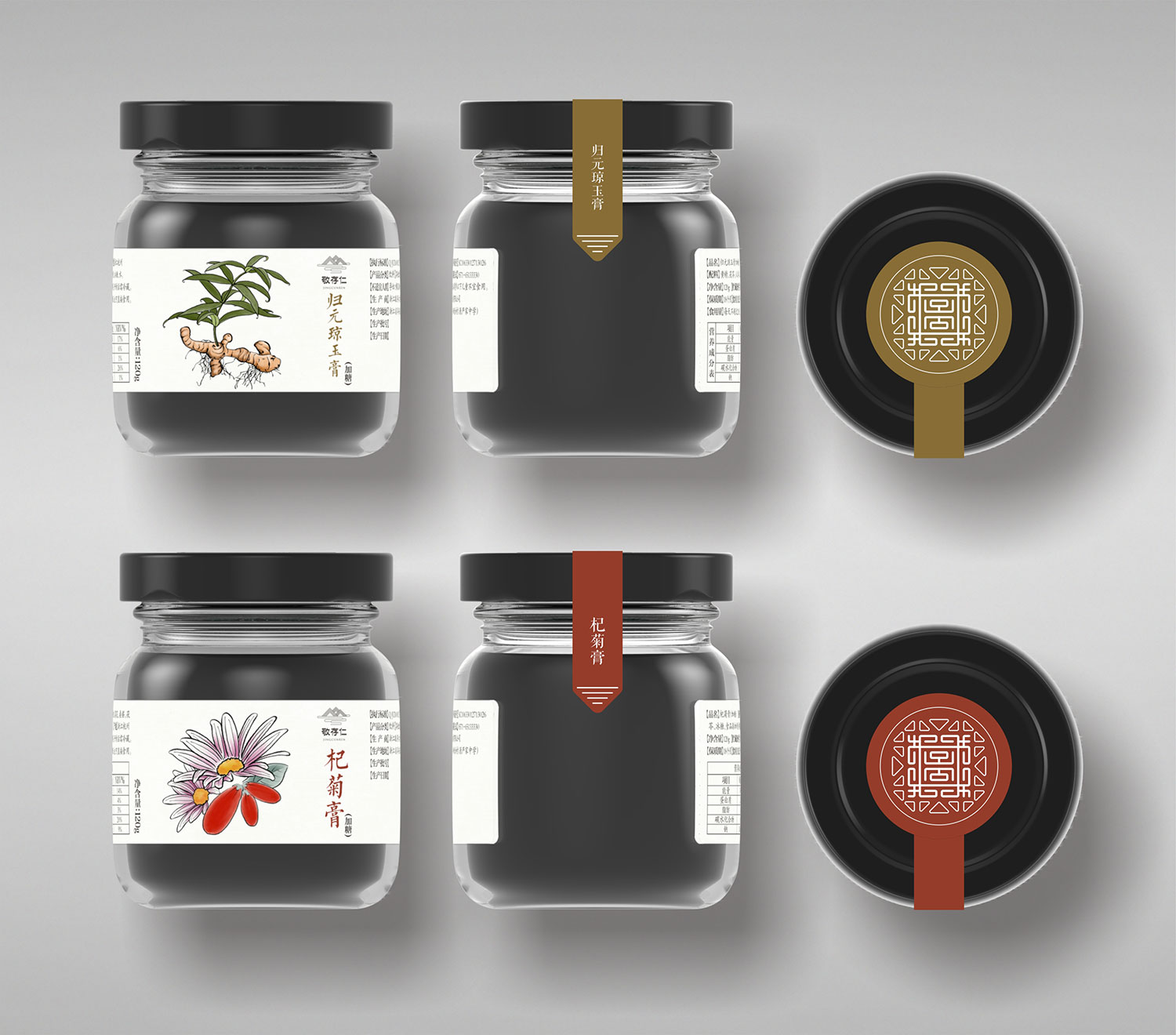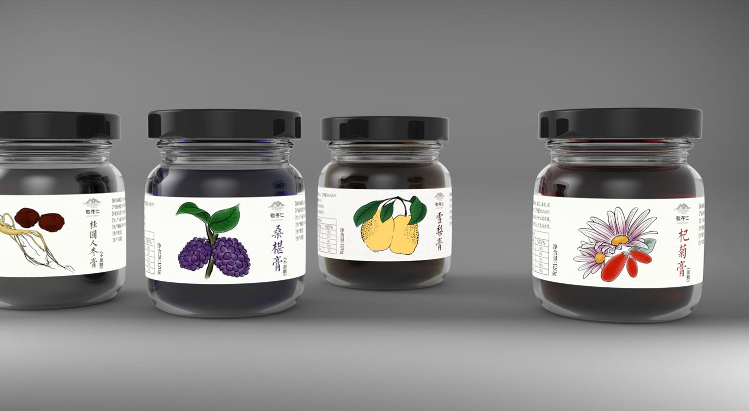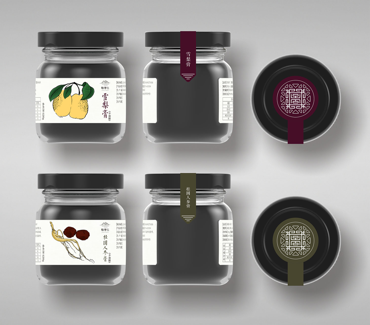 膏方品種類繁多,目前中藥材市場魚龍混雜,導(dǎo)致膏方質(zhì)量良莠不齊。敬存仁利用獨一無二地理原材料優(yōu)勢打造原生態(tài)無污染系列膏方產(chǎn)品。石特為敬存仁做了全面的品牌形象設(shè)計,統(tǒng)一風(fēng)格,統(tǒng)一品牌形象。在品牌命名上,遵循中國儒家思想“敬業(yè)修身、存為德、仁滿天下”故名為敬存仁。