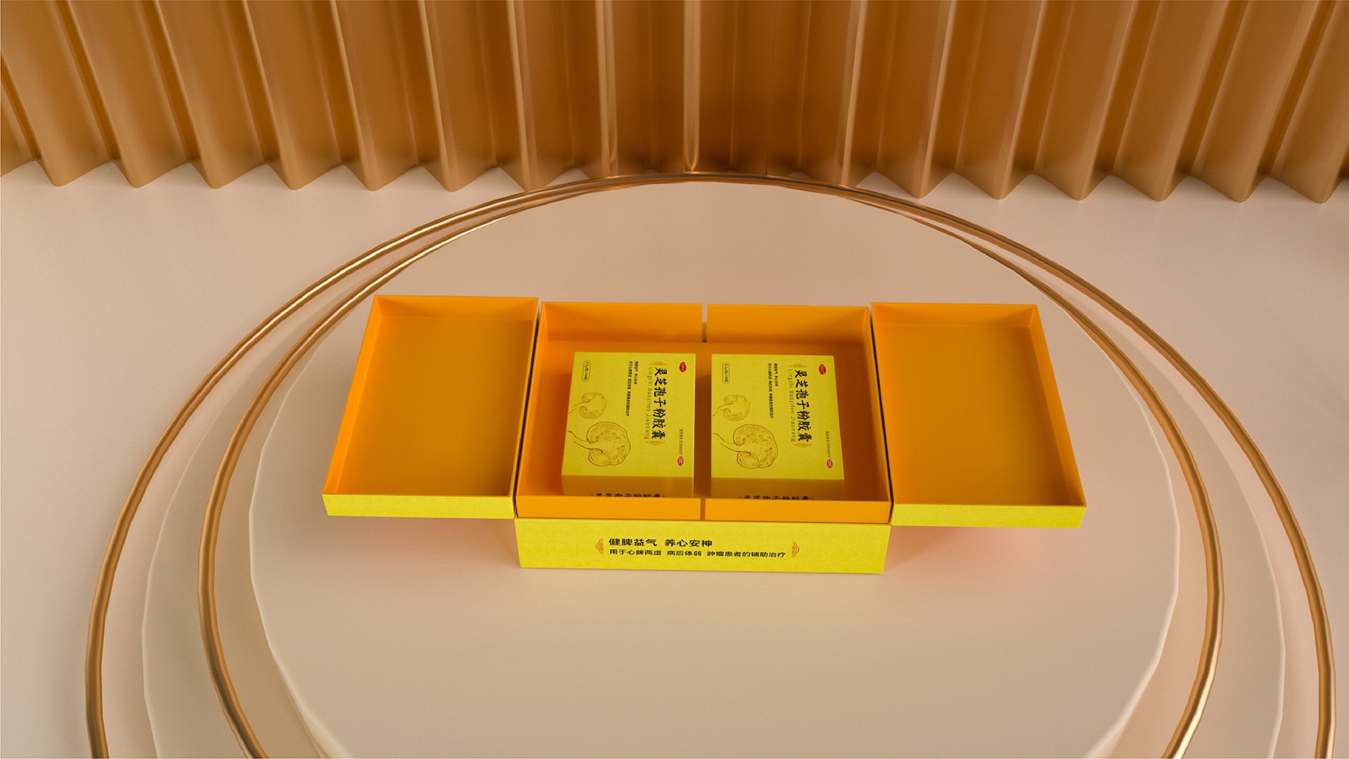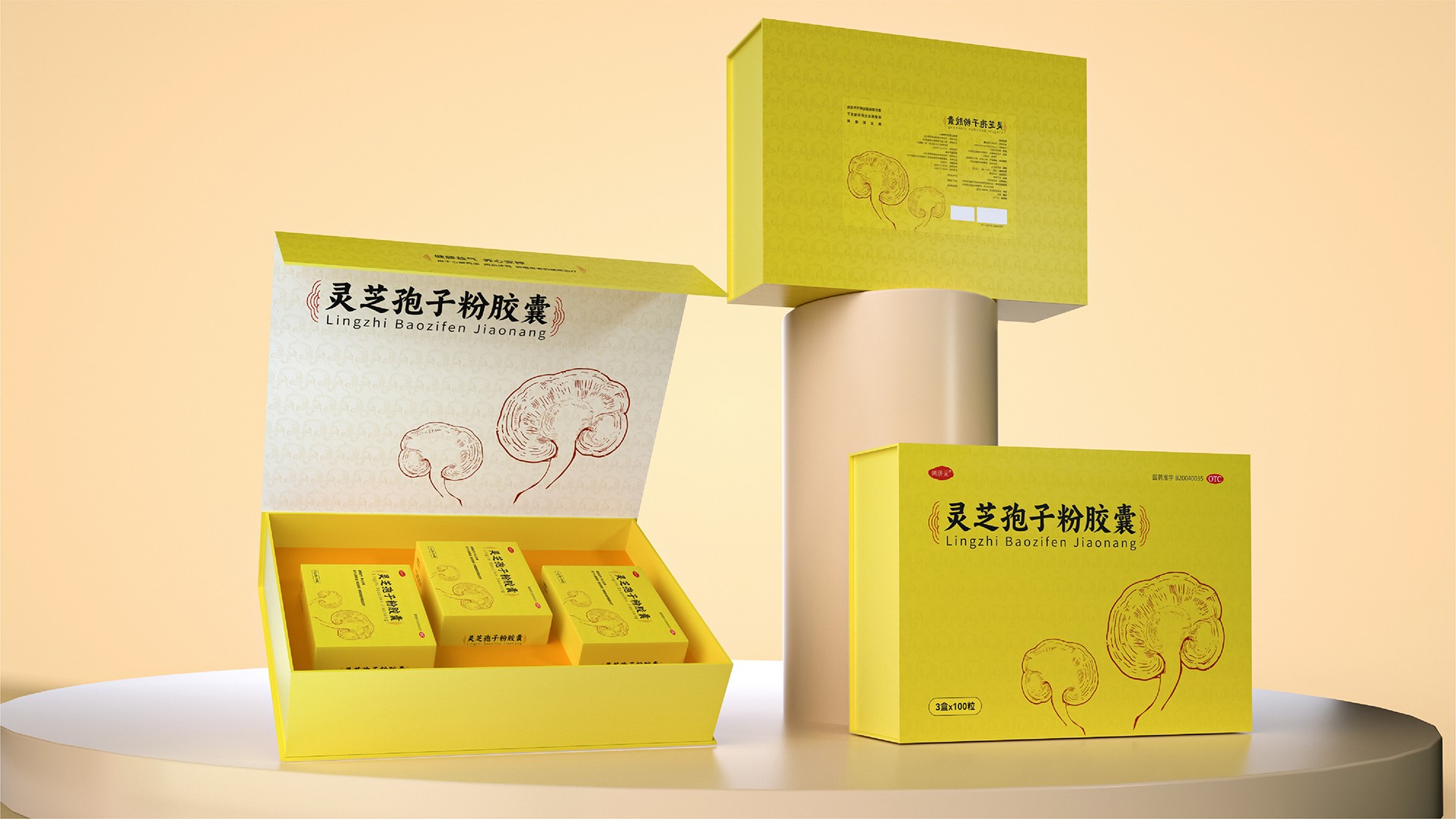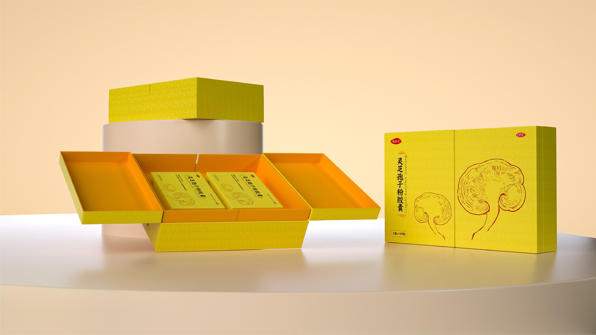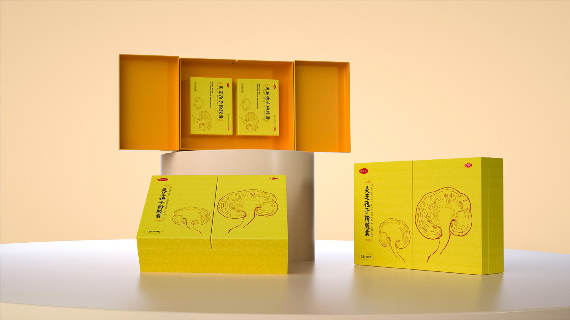 這款靈芝孢子粉膠囊的禮盒設計,充分融合了現代審美與傳統文化元素,既彰顯了產品的專業品質,又凸顯了禮盒的高端定位。