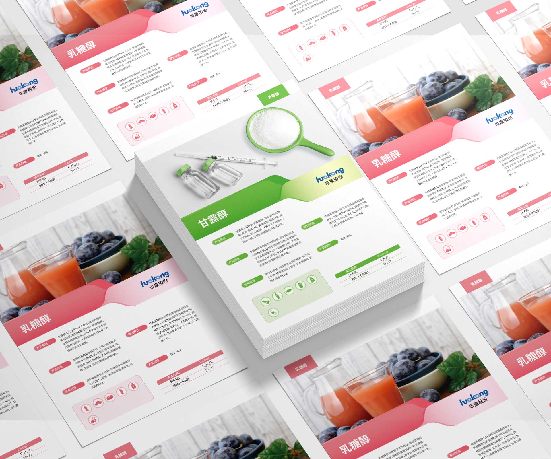 將封套與單頁設計風格,延伸至企業其他宣傳物料(如畫冊、展會展板 ),構建 “統一視覺語言 + 分層價值傳遞” 的品牌傳播體系。當客戶接觸華康藥業的宣傳物料時,通過一致的色彩、符號、文案風格,持續強化 “健康糖醇專家” 的品牌認知,助力企業在大健康配料市場建立差異化競爭優勢。