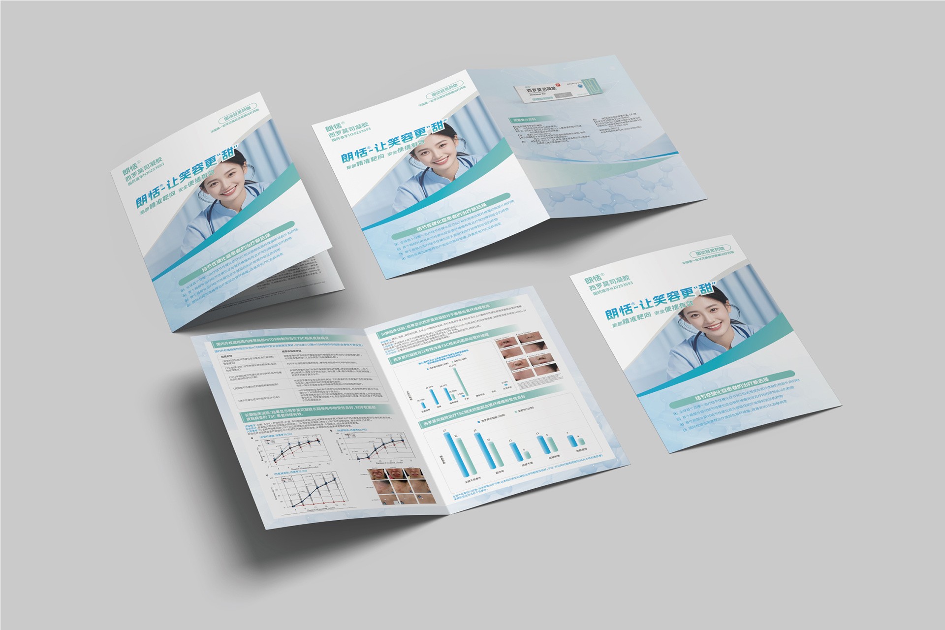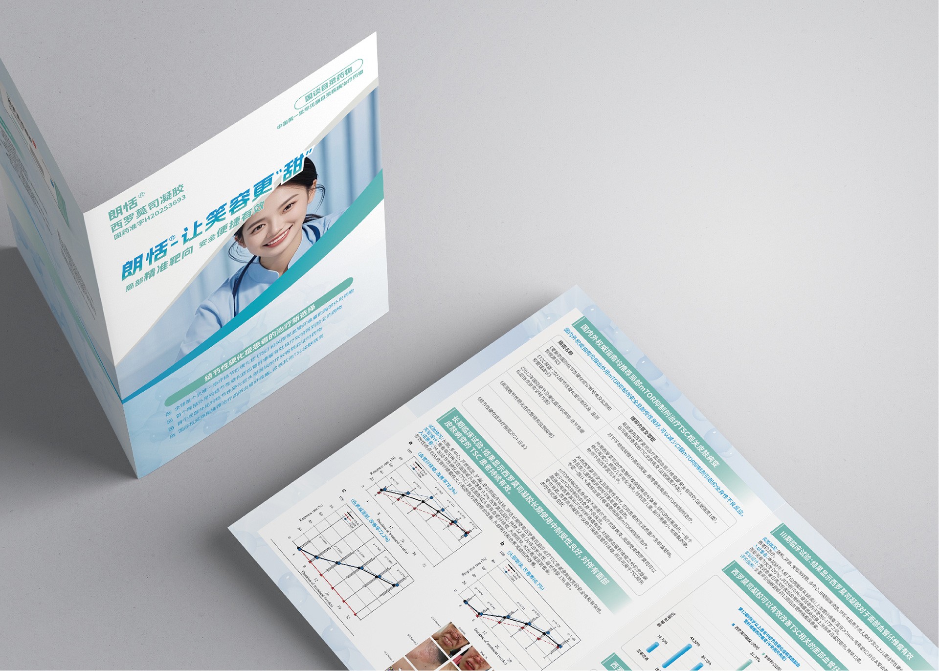 石特大健康受福建瑞科藥業委托,為其郎恬?西羅莫司凝膠產品設計了專業的DA(Detail Aid)折頁。DA是醫藥領域重要的學術推廣工具,用于向醫療專業人士清晰、準確地傳遞產品核心信息。本項目旨在通過精準的視覺表達和結構化的信息設計,突出郎恬?產品的臨床優勢和專業形象,支持其市場推廣和醫學溝通。