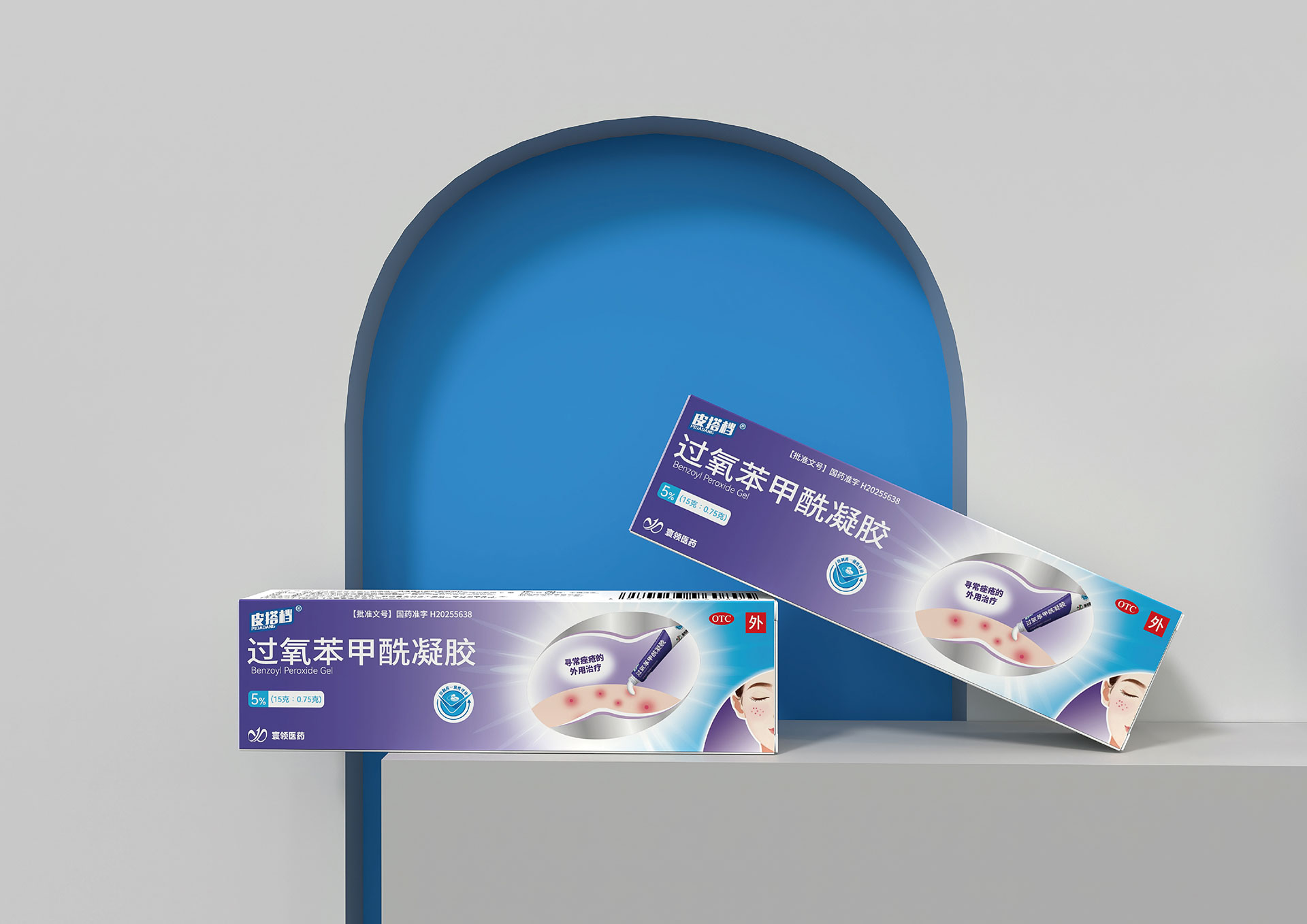 過氧苯甲酰凝膠系列:以警示黃為主識別色,強調(diào)強效殺菌的功能特性。